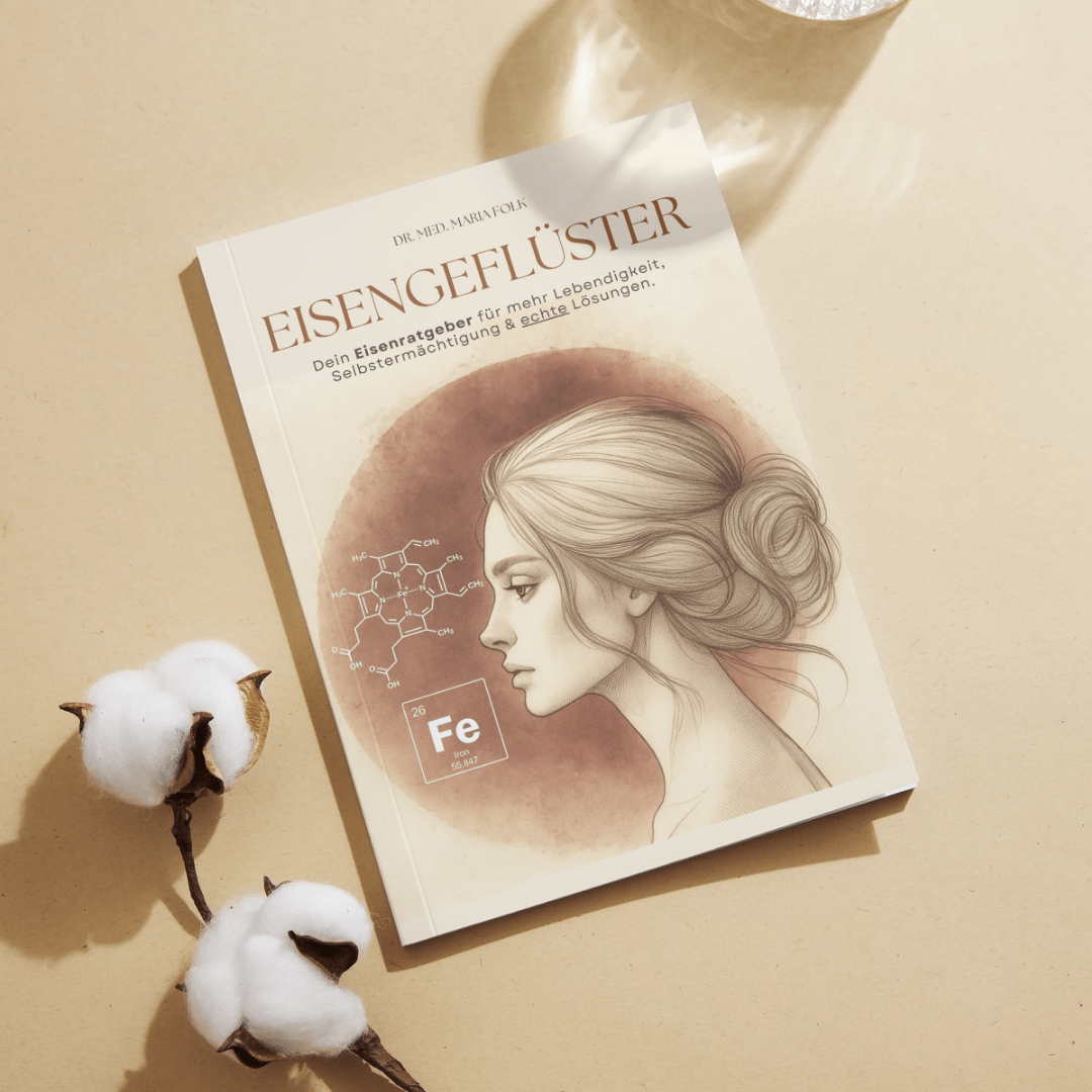 In meinem Buch „Eisengeflüster“ lernst du, WIE Eisen im Körper funktioniert und welche Steine aus dem Weg geräumt werden müssen, damit es in den richtigen Mengen in deinen Zellen ankommt. Du wirst dann endlich verstehen, warum Eisentabletten oft nix bringen und wie / wo du Hilfe bekommst.